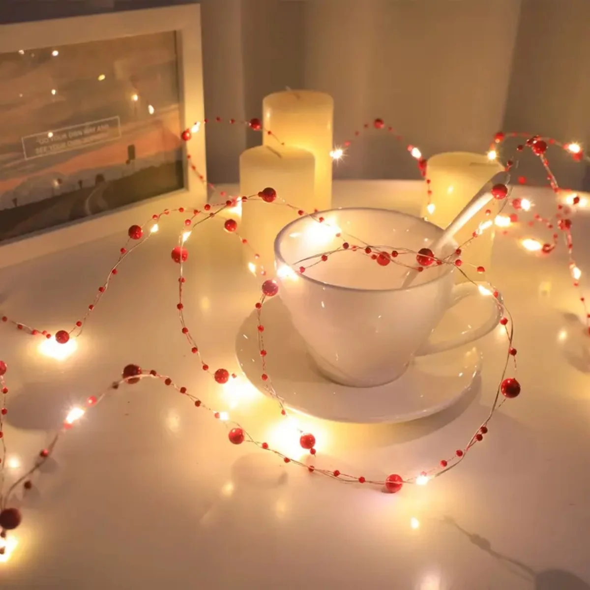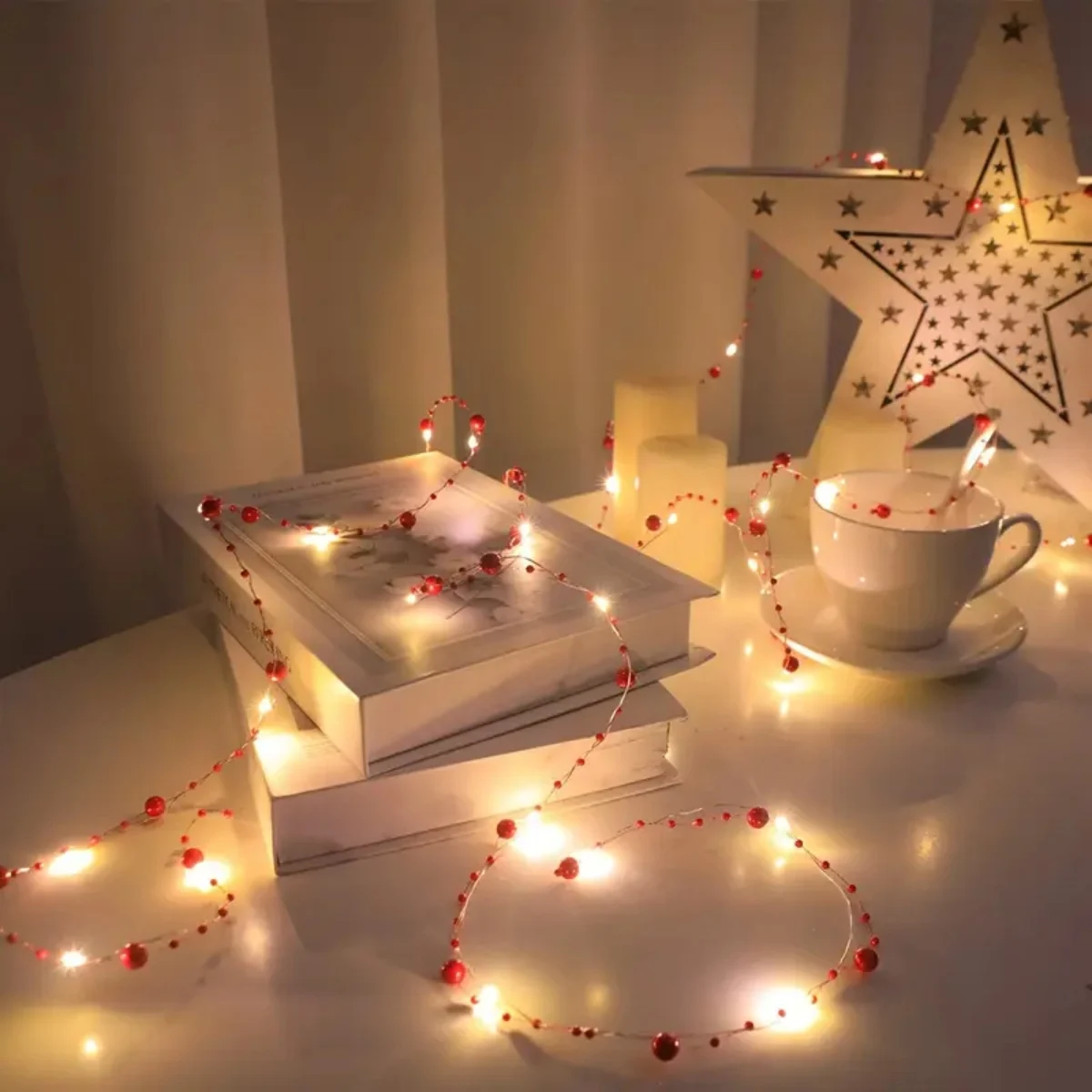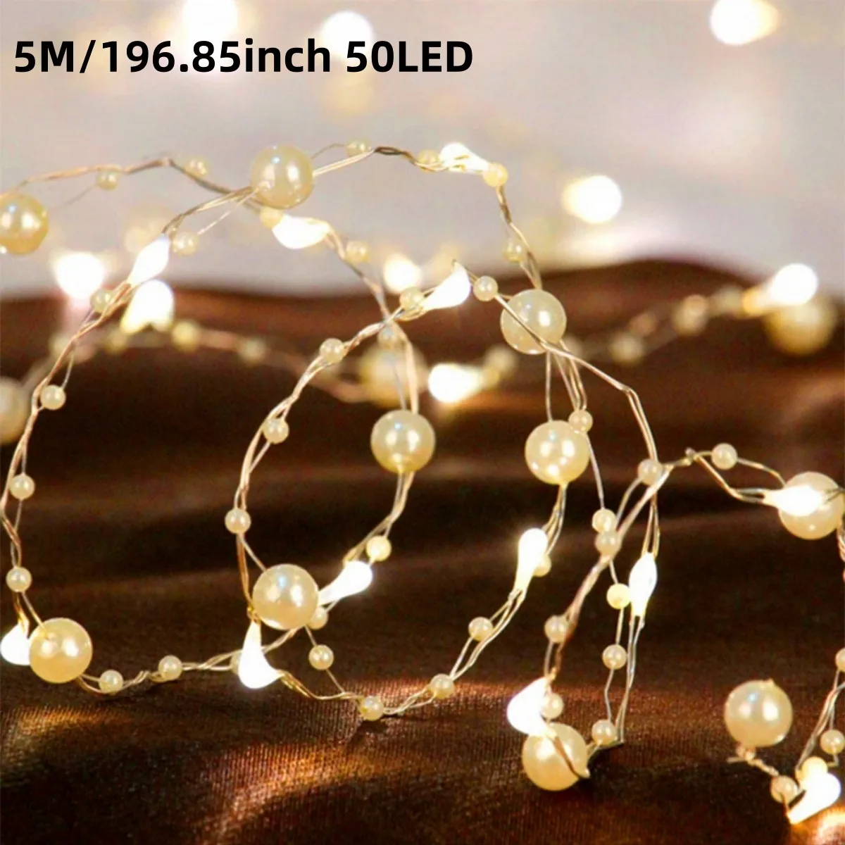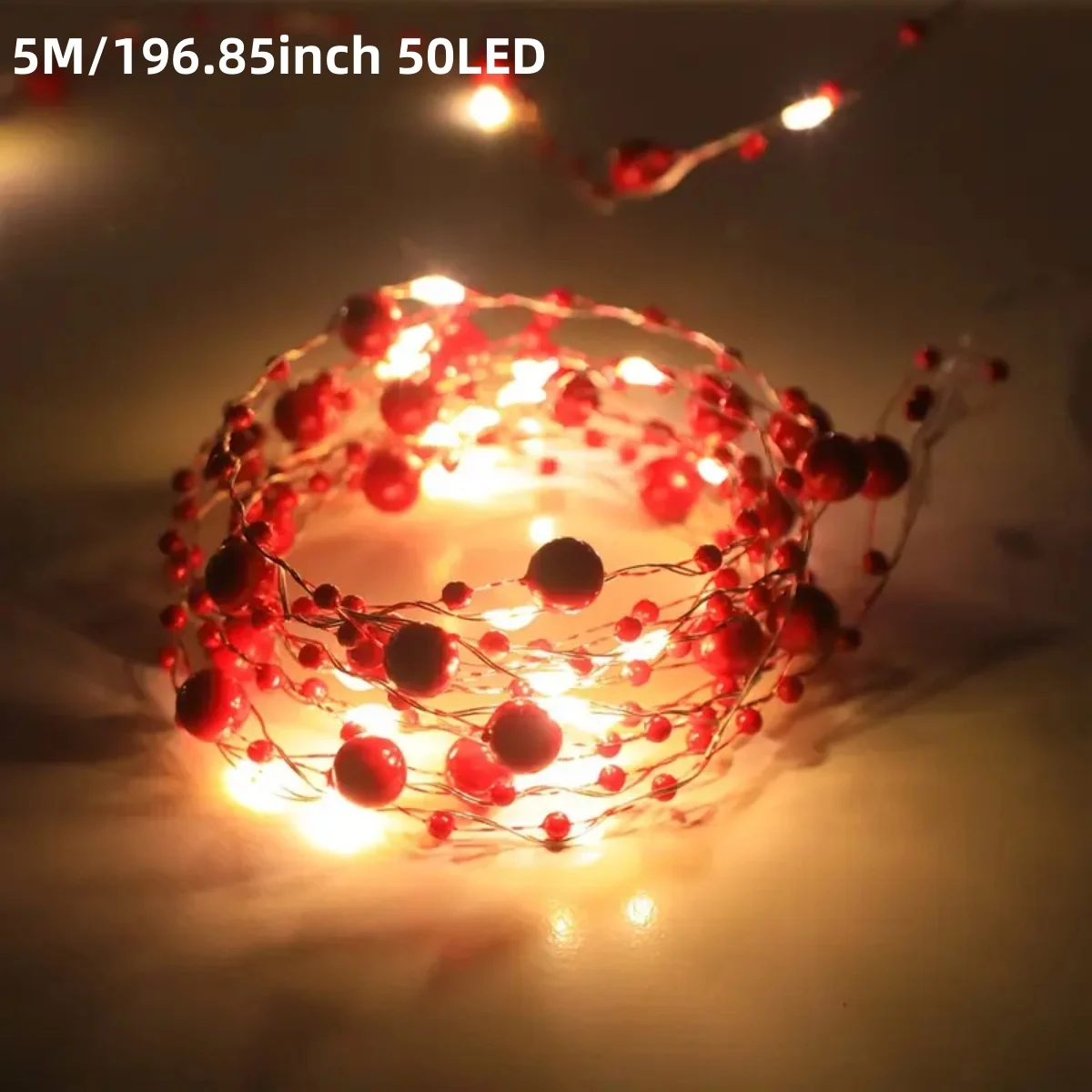1pc 20/50 LED Red/White Pearl String Lights Pearlized Copper Wire Fairy Lamp Battery Powered For Home Wedding Festival Decor